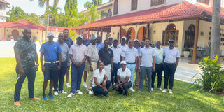 Tanzanian professional and amateur golfers pose for a group photo during the Community Golf Instructor (CGI) programme held in Dar es Salaam. (Inset): Tanzania Golf Union chairman Gilman Kasiga. PHOTO/COURTESY