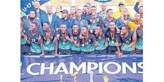 Tanzania’s U-17 team, the Serengeti Boys, celebrate their 3-2 win over Uganda to claim the Cecafa-Caf Afcon qualifiers title in Ethiopia. PHOTO | COURTESY