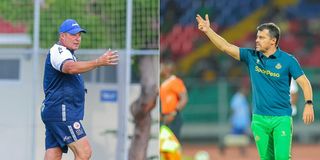 Combination photo of Young Africans (Yanga) head coach Pedro Gonçalves (right) and Simba’s Steve Barker during different past matches. PHOTO | COURTESY