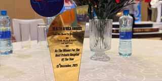 The best private hospital in Tanzania award, won by Aga Khan Hospital, Dar es Salaam, at the Health Africa 2025 Awards held on December 15, 2025, in Dar es Salaam