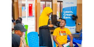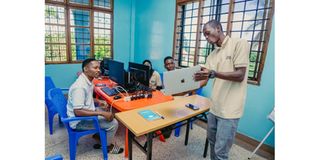 One of the founders of Digital Agency, Ramadhani Karupa (seated), during a Kidijitali Project class.
