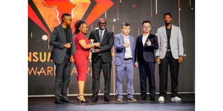 The Director General of the Tanzania Tourist Board (TTB), Ephraim Mafuru (third left), hands over one of the awards to the Softcare international team during the Consumer Choice Awards Africa 2025 ceremony held at the Super Dome Hall in Masaki, Dar es Salaam. Witnessing the event are; Head of National Sales Department, Phil Zeng (third right), Deputy Managing Director, Cheng Han (second right), Marketing Manager of Doweicare Technology Company Limited, Lucy Msami (second left), and Sales Maneger Dotto Salum (left).