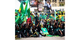 A CCM-branded helicopter also circled Mnazimmoja Grounds, thrilling supporters.