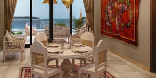 Guests can indulge in three distinct dining venues blending Zanzibari, Mediterranean, and Japanese influences, or unwind at the infinity pool overlooking the Indian Ocean.