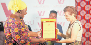 Mwanahamisi Singano (left), on behalf of other intellectuals, hands an honorary medal to Prof Karim Hirji’s wife, Ms Farida Hirji (right), during an event organised to mark Prof Hirji’s intellectual and revolutionary contribution to Tanzania which took place Friday last week at Soma Mkawahi, Mikocheni. The event was organised by Wanazuoni, an informal association of the country’s scholars. PHOTO | COURTESY OF WANAZUONI