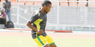 At the centre of a storm: Yanga defender Ramadhani Kessy kicks the ball during a warm-up session at the National Stadium recently. Simba SC accuses rivals Yanga of irregularly signing him up. PHOTO | FILE