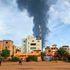 Men walk down a street in Khartoum on June 8, 2023, as smoke rises from behind buildings amid continuing fighting between the army and paramilitary forces. Sudanese army soldiers and paramilitaries fought for control of a military facility on June 8, in Khartoum where a fire raged at an oil and gas facility, witnesses said.