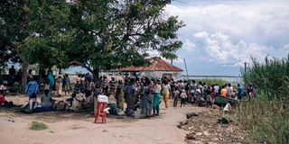 Fish sellers gather to buy freshly caught fish that arrived in the port of Vitshumbi on Lake Edward in eastern Democratic Republic of Congo (DRC) on April 3, 2023. PHOTO | ALEXIS HUGUET | AFP