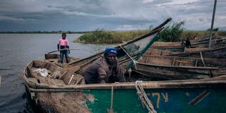 A fisherman prepares his canoe in the port of Vitshumbi before heading out to fish on Lake Edward in eastern Democratic Republic of Congo (DRC) on April 3, 2023. PHOTO | ALEXIS HUGUET | AFP)=