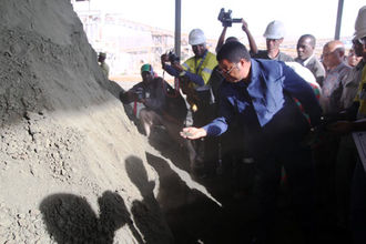 Prime Minister Kassim Majaliwa gets the feel of a gold ore sample at Buzwagi Gold Mine in Shinyanga Region on Monday during an impromptu visit. Last week President John Magufuli reiterated his indefinite ban on export of copper concentrate. Miners have been exporting the concentrate for smelting. PHOTO | PRIME MINISTER’S OFFICE