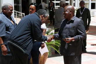 Government Chief Whip and Minister of State in the Prime Ministers’ Office (Policy Coordination and Parliamentary Affairs) Jenista Mhagama confers with Minister of State in the President’s Office (Regional Administration, Local Government, Civil Service and Good Governance), Mr George Simbachawene (left), and Minister of State in the President’s Office (Public Service Management and Good Governance) Angellah Kairuki in the Parliament Chamber yesterday. PHOTO | EDWIN MJWAHUZI