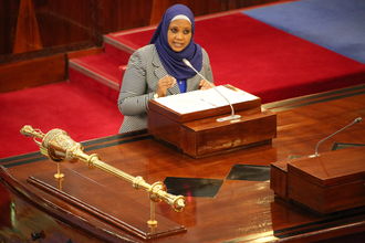 Deputy Minister in the Office of the President (Local Government) Mwita Waitara during the question and answer session. PHOTO |ERICKY BONIFACE.