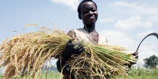 A smallholder farmer displays a newly harvested bunch of rice from her farm in Morogoro. The long awaited Tanzania Agricultural Bank is expected to help smallholder farmers increase farm productivity. PHOTO | FILE