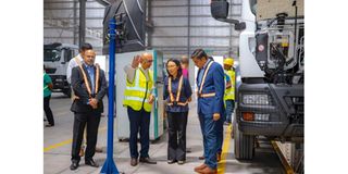 China’s ambassador to Tanzania, Chen Mingjian (second right), listens as Saturn Corporation Chief Operations Officer Mehul Sachdev (second left) explains operations during her visit to the company’s HOWO truck assembly plant in Kigamboni, Dar es Salaam. Looking on are Saturn directors. PHOTO|COURTESY
