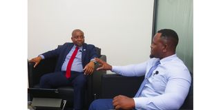 Dar es Salaam Stock Exchange CEO Peter Nalitolela (left) and Mwananchi Communications Ltd Executive Editor Mpoki Thomson during an interview.