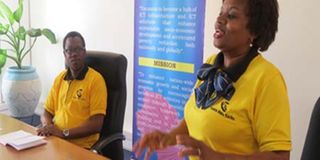 TTCL’s outgoing Legal and Regulatory Affairs head and secretary Gilder Kibola speaks to fellow workers during a brief ceremony to bid her farewell as she completed her contract. Left is the firm’s chief executive officer, Dr Kamugisha Kazaura. The event took place at the weekend in Dar es Salaam. PHOTO | THE CITIZEN CORRESPONDENT