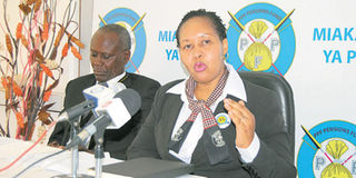 PPF Public Relations and Marketing manager Lulu Mengele briefs reporters in Dar es Salaam yesterday. With her is PPF Members’ Services manager Godfrey Mollel. PHOTO | MICHAEL JAMSON