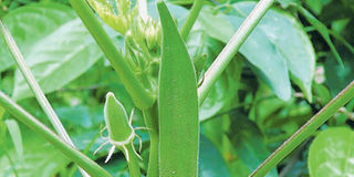 Immature seed pods on an okra tree. Shortage of water in the Coast Region has affected production of the crop causing prices at the market to sour. PHOTO | FILE