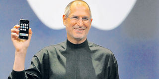 This file photo taken on January 9, 2007 at the Macworld Conference in San Francisco, California shows Apple chief executive Steve Jobs unveiling the iPhone, an ultra-slim new mobile phone – less than half-an-inch (1.3 centimetres) thick – boasting a phone, Internet capability and an MP3 player as well as featuring a two megapixel digital. PHOTO | AFP