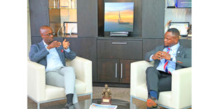 Stanbic Bank Chief Executive Manzi Rwegasira (left) discusses the bank’s role in financing Tanzania’s infrastructure and SME sectors with MCL Executive Editor Mpoki Thomson in Dar es Salaam. PHOTO | MICHAEL MATEMANGA