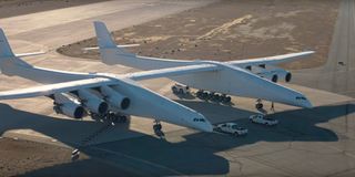 The world's largest airplane -- a Stratolaunch behemoth with two fuselages and six Boeing 747 engines -- made its first test flight on Saturday in California.