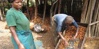 Women prepare palm oil seeds before extracting oil at Nkonkwa Village in Kigoma Region. PHOTO | COURTESY OF WOINDESHIZZA.BLOGSPOT.COM