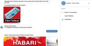 An example of a Chatbot being developed by Mwananchi Communications Limited. Chatbots are set to outperform mobile apps in the next five years. PHOTO | BUSINESSWEEK PHOTOGRAPHER