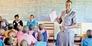 A teacher teaching the children about reusable sanitary pads. Schools should be encouraged to impart mentrual hygiene education to the children to break taboos and encourage hygienic practices. PHOTO | AFRIPADS