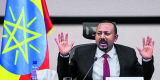 Ethiopian Prime Minister Abiy Ahmed gestures at the House of Peoples Representatives in Addis Ababa, Ethiopia, on November 30, 2020 to respond to the Parliament on the current conflict between Ethiopian National Defence Forces and the leaders of the Tigray People's Liberation Front. PHOTO| AFP