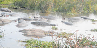 Hippos grunting and snorting in the pool. One of the attractions in Katavi national park is a hippo population of over 500. PHOTOI ELISHA MAYALLAH.