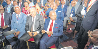 A picture taken on September 1, 2016 shows opposition figures Vital Kamerhe (right), Samy Badibanga (centre) and Pierre Matusila (left) attending the opening ceremony of a Congolese “National Dialogue” in the DRC capital Kinshasa. PHOTO | FILE