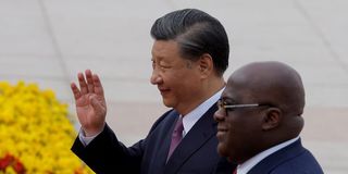 Democratic Republic of Congo's President Felix Tshisekedi and Chinese President Xi Jinping attend a welcoming ceremony at the Great Hall of the People in Beijing, China May 26, 2023. PHOTO | REUTERS