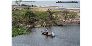 People ride a canoe after Cyclone Gezani hit the port city of Toamasina, in Madagascar, February 12.