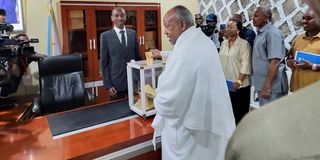 Djibouti's President Ismael Omar Guelleh casts his ballot during the Presidential elections at the City Hall polling centre in Ras-Dika district of Djibouti City in Djibouti April 10, 2026. PHOTO | REUTERS