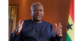 Ghana's President-elect John Dramani Mahama, 66, speaks with Reuters journalists in his office after general elections, in Accra, Ghana, December 13, 2024. REUTERS/Francis Kokoroko/File Photo