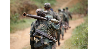 Democratic Republic of Congo military personnel (FARDC) patrol against the Allied Democratic Forces (ADF) and the National Army for the Liberation of Uganda (NALU) rebels near Beni in North-Kivu province, December 31, 2013.