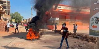 Sudanese anti-coup protesters gather in a street in Sudan's eastern Kassala state on October 30, 2021, to express their support for the country's democratic transition which a military takeover and deadly crackdown derailed. PHOTO | AFP