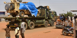 A military truck of the Nigerien security forces, part of an escort to a French Army military convoy crosses the Lazaret district in Niamey on October 10, 2023. PHOTO | AFP