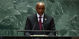 Sudan's Sovereign Council Chief General Abdel Fattah al-Burhan, addresses the 79th United Nations General Assembly at United Nations headquarters in New York, U.S., September 26, 2024. PHOTO | REUTERS