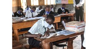 Pupils of Main Street Primary School in Jinja City attend a lesson on November 17. Experts now say the education sector is in a crisis as players individually determine how to teach and access learning. PHOTO | NMG
