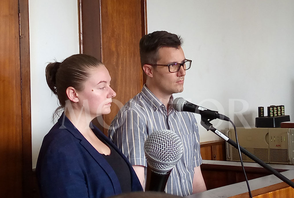 Nicholas Spencer and his wife Ms Mackenzie Leing Mathias Spencer standing in the dock at Buganda Road Chief Magistrate’s court, Kampala on February 21, 2023. PHOTO/JULIET KIGONGO