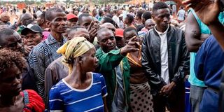 A voter argues with an official from the Independent National Electoral Commission at a polling station at Bwakya school in Lubumbashi, DRC on December 20, 2023. PHOTO | AFP