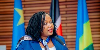 EAC Secretary-General Veronica Nduva delivers remarks during the International Customs Day at the EAC’s headquarters in Arusha on January 27, 2025. PHOTO | COURTESY