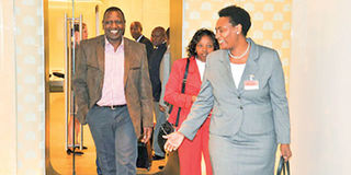 Deputy President William Ruto (left) and his wife Rachel Ruto (right) are received by Kenyan ambassador to Netherlands Makena Muchiri at the Schipol Airport on Monday. Mr Ruto went to The Hague to attend ICC’s status conference set to be held yesterday. PHOTO | NMG