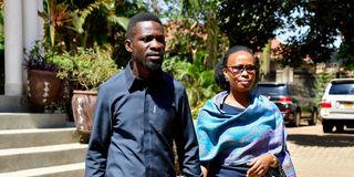 Ugandan Presidential candidate Robert Kyagulanyi, also known as Bobi Wine, of the National Unity Platform (NUP) party, walks with his wife Barbara Kyagulanyi, after he addressed a press conference as they prepare to leave their Magere home to vote in the general election, in Kasangati town near Kampala, Uganda January 15, 2026. PHOTO | COURTESY