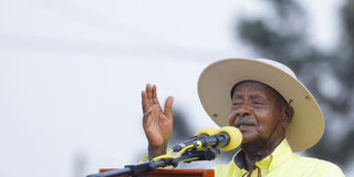 Uganda's President and the leader of ruling National Resistance Movement (NRM) party, Yoweri Museveni, addresses a campaign rally at the Kitebi Primary school, Rubaga division of Kampala, Uganda January 5, 2026, PHOTO/REUTERS