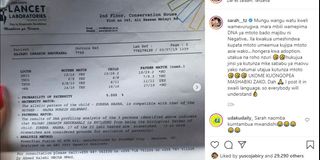 In a lengthy Insta post of her own, Sarah, who’s Italian by nationality updated a post written in Kiswahili negating all the claims that were made by her husband on his post of revelation. “People are really desperate, you’ve done a DNA test twice on the baby and the results came back negative, showing that you’re not the father. But since you’ve failed to father a child of your own you are now claiming someone else’s baby,” read the post by Sarah attached to photos of an alleged paternity DNA test that was supposedly conducted on the baby Harmonize claims to have fathered.
