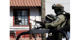 A person watches from their window as soldiers guard a street days after a series of blockades and attacks by organized crime following a military operation in which cartel boss Nemesio Oseguera, "El Mencho," was killed, on the outskirts of Puerto Vallarta, in Ixtapa, Mexico, February 24, 2026.