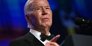 US President Joe Biden speaks during the White House Correspondents' Association (WHCA) dinner at the Washington Hilton, in Washington, DC, on April 27, 2024.