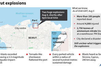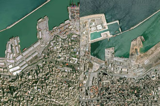 handout satellite images obtained courtesy of  Maxar Technologies on August 5, 2020 showing an overview of the port after the explosion in Beirut on. AFP